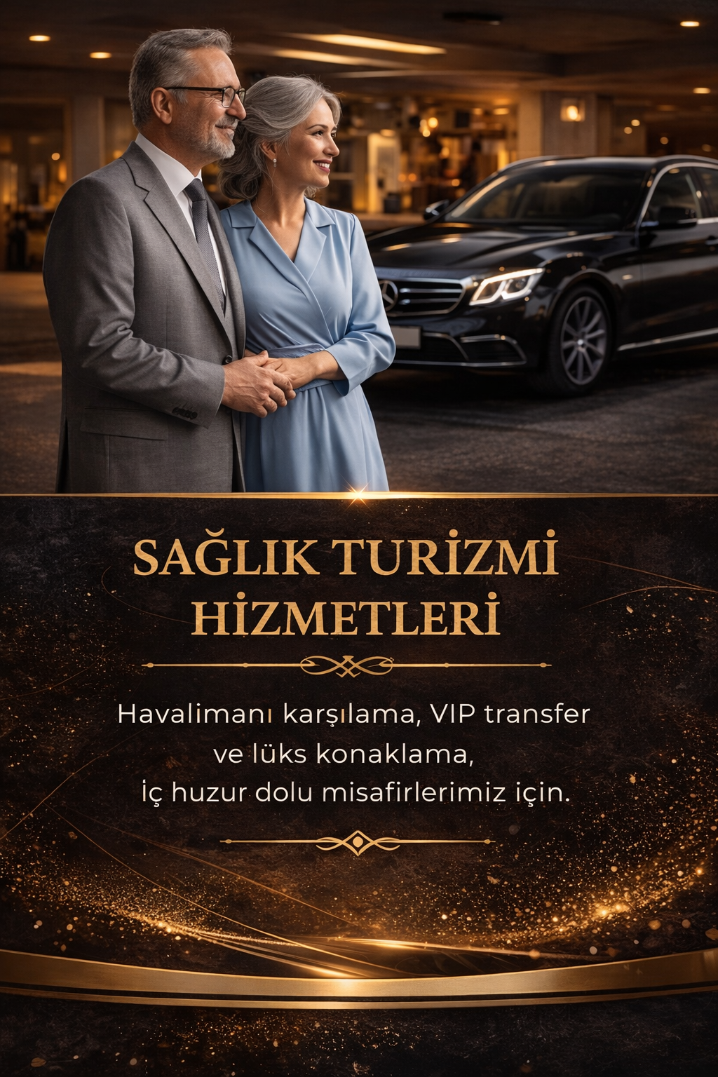 İstanbul'da VIP havalimanı transferleri, yönetici şoförlü araçlar, 5 yıldız & rezidans oteller ve sağlık turizmi hizmetleri sunuyoruz. Seçkin hastaneler, Prof. Dr. hizmetleri ve rapor analizleri ile güvenli, konforlu ve özel deneyimler sağlıyoruz.